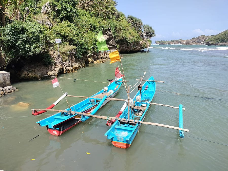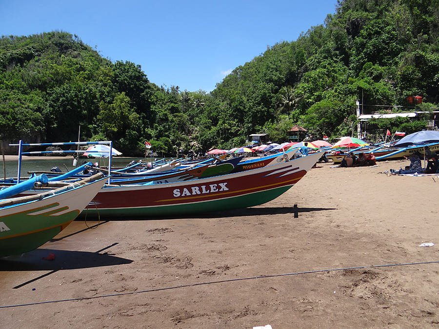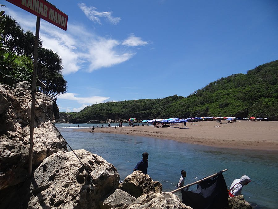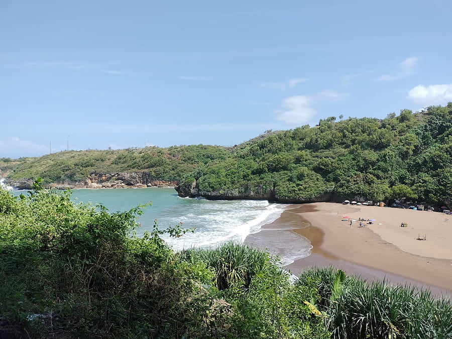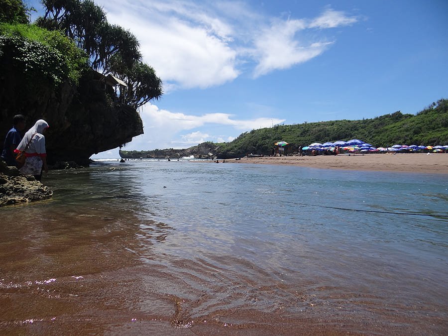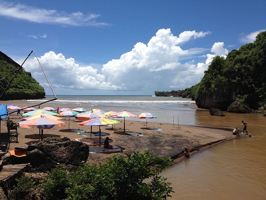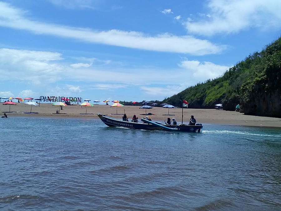 Pantai Baron (Baron Beach) is a tourist attraction in the form of a beach located in Kemadang Village, Gunung Kidul Regency, Special Region of Yogyakarta. This beach is about 40 km from the city center of Yogyakarta and directly borders the Indian Sea. Baron Beach has stunning natural views with white and fine sand, two large corals typical of Gunung Kidul, and an underground river that flows towards the sea with fresh water. Baron Beach offers various facilities and activities for visitors, such as a fish auction, children’s play rides, motorized boats, souvenir shops, food stalls, and a sea alms ceremony which is held every year by the local community.