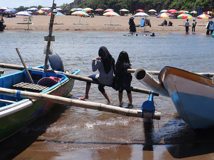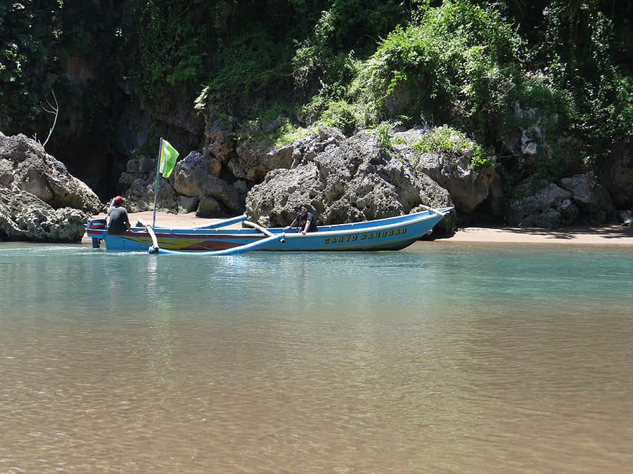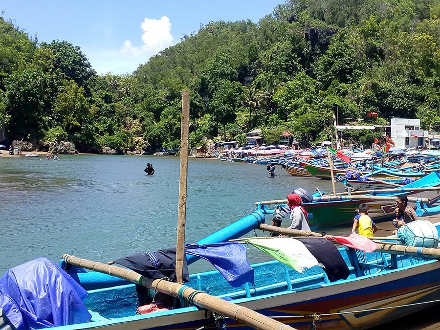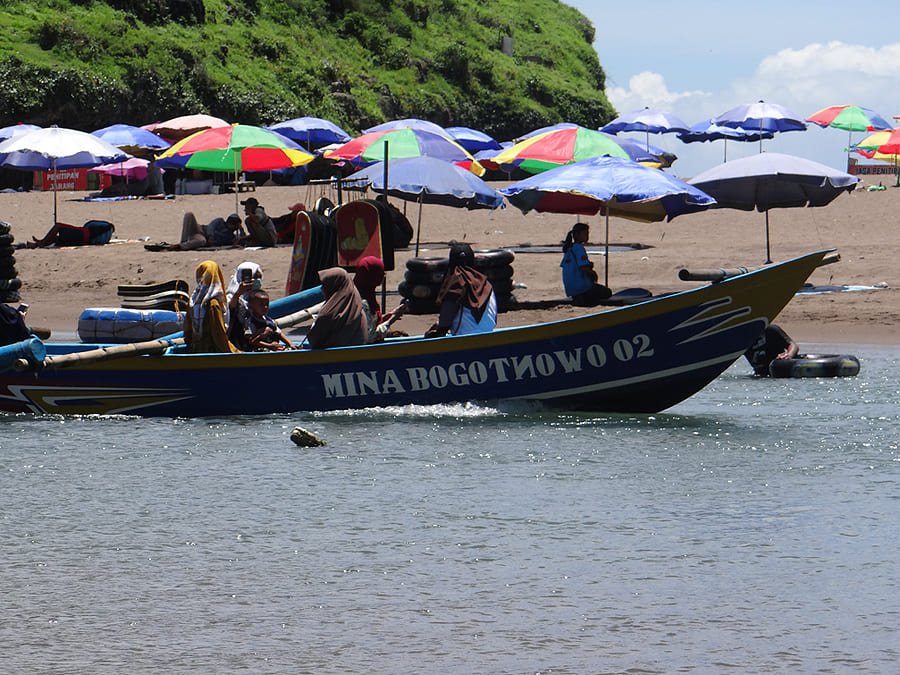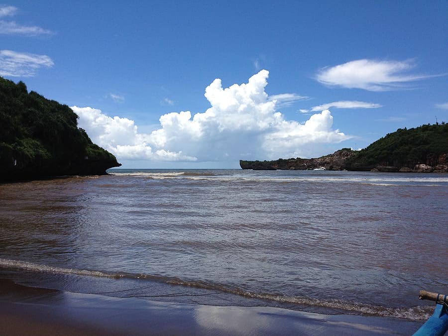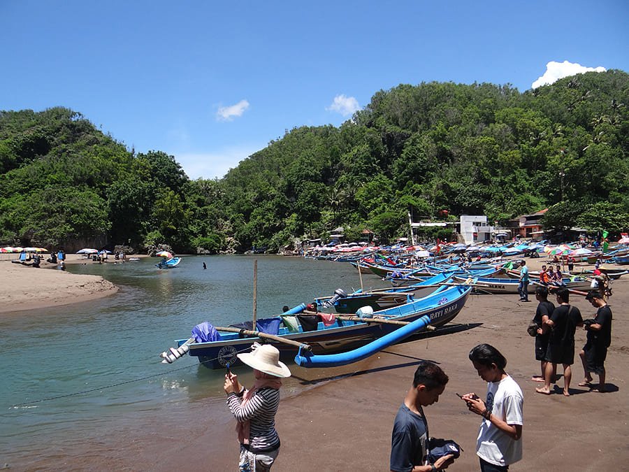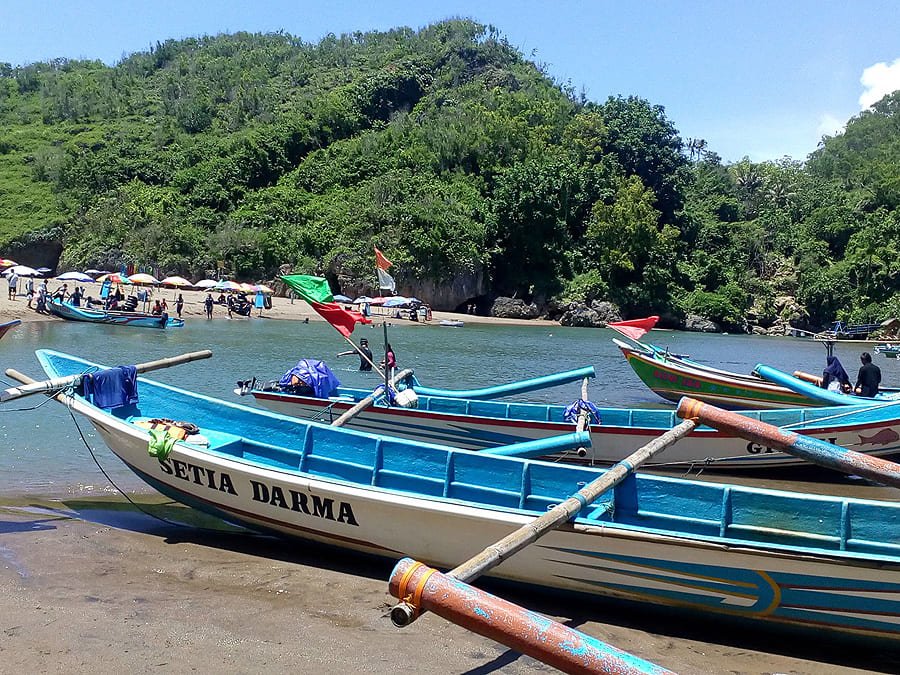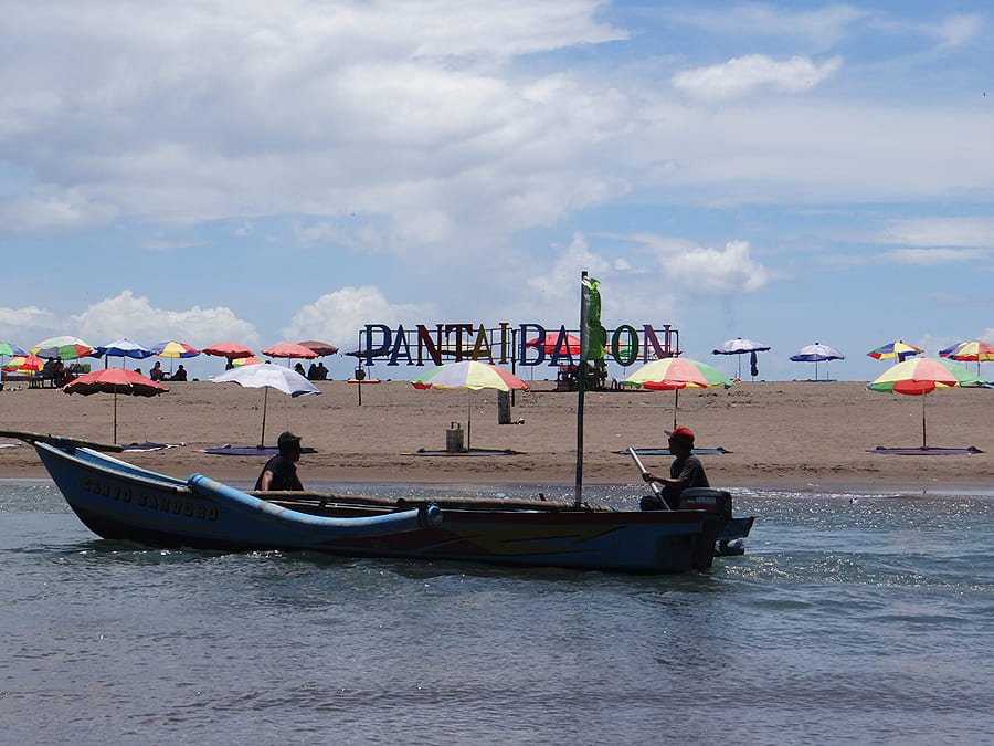 Pantai Baron (Baron Beach) is a tourist attraction in the form of a beach located in Kemadang Village, Gunung Kidul Regency, Special Region of Yogyakarta. This beach is about 40 km from the city center of Yogyakarta and directly borders the Indian Sea. Baron Beach has stunning natural views with white and fine sand, two large corals typical of Gunung Kidul, and an underground river that flows towards the sea with fresh water. Baron Beach offers various facilities and activities for visitors, such as a fish auction, children’s play rides, motorized boats, souvenir shops, food stalls, and a sea alms ceremony which is held every year by the local community.