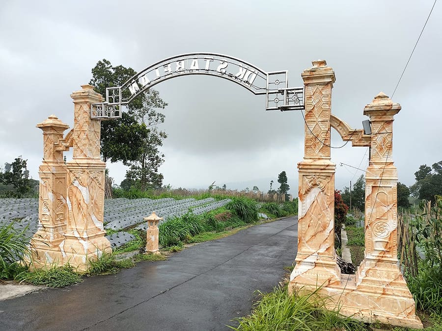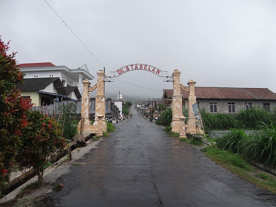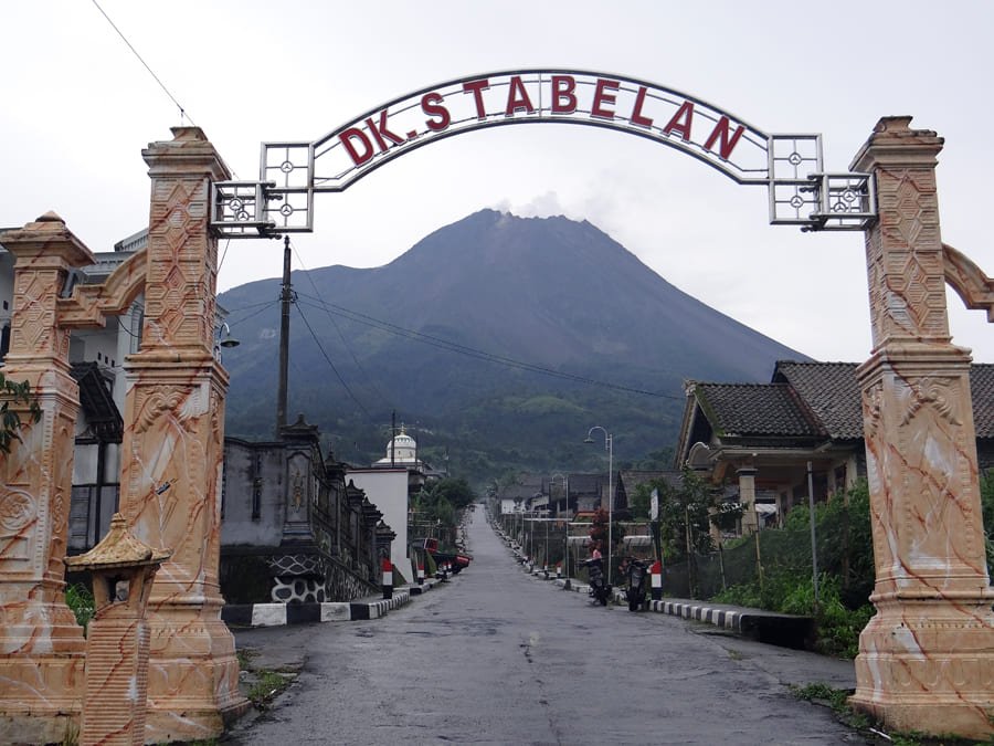 Gapura Dusun Stabelan (Dusun Stabelan Gate) is one of the interesting tourist attractions at the foot of Mount Merapi in the Boyolali Regency, Central Java. From this gate, visitors can enjoy beautiful views of Mount Merapi and its surroundings. It is a popular spot for taking selfies.